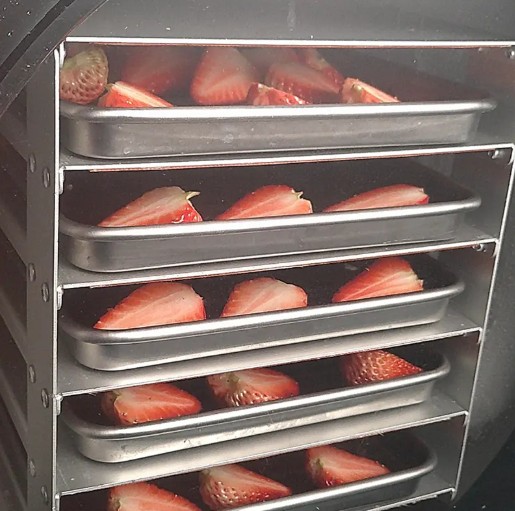 Compact frutty freeze dryer with a drying capacity of 3-4 kg per batch. This makes the appliance an ideal choice for self-marketers and small businesses seeking a flexible, user-friendly solution for producing high-quality freeze-dried products.
